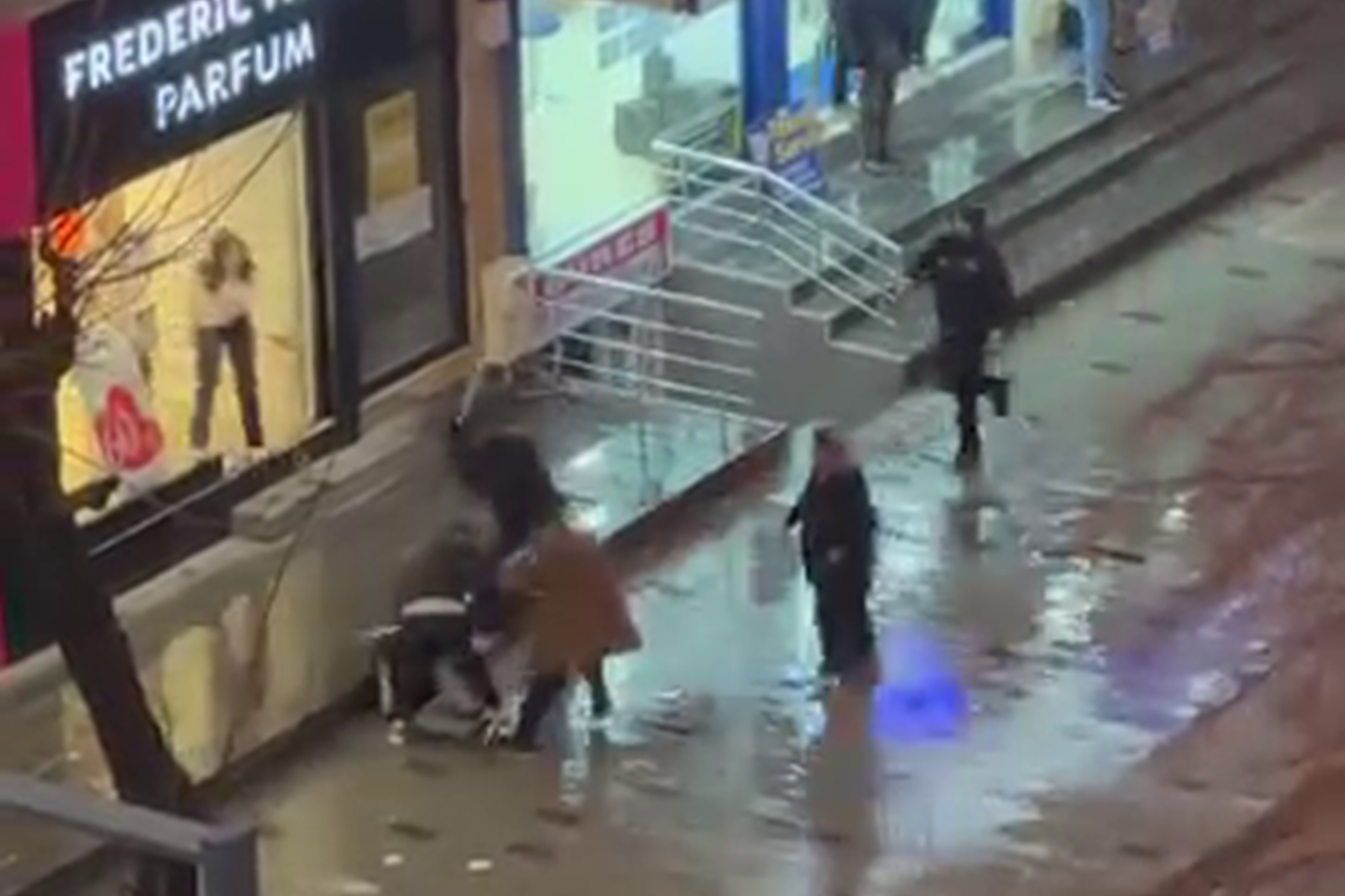 Yere düşen kişiye sopalarla saldırdılar